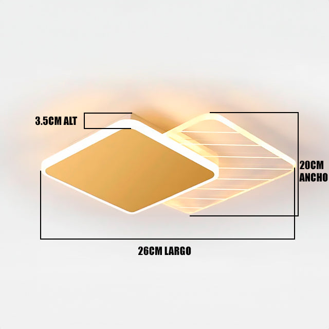 La lámpara de techo Cassandra Gold ofrece un diseño moderno y elegante que combina funcionalidad y estilo. Su estructura geométrica con acabado dorado aporta un toque contemporáneo y sofisticado, ideal para dormitorios, pasillos, closets o espacios compactos. Cuenta con iluminación LED tricolor de 20W, que permite alternar entre luz cálida, neutra y fría mediante el interruptor de pared, adaptándose a cada momento del día. Su perfil delgado y diseño adosable garantizan una instalación práctica y una apariencia limpia.