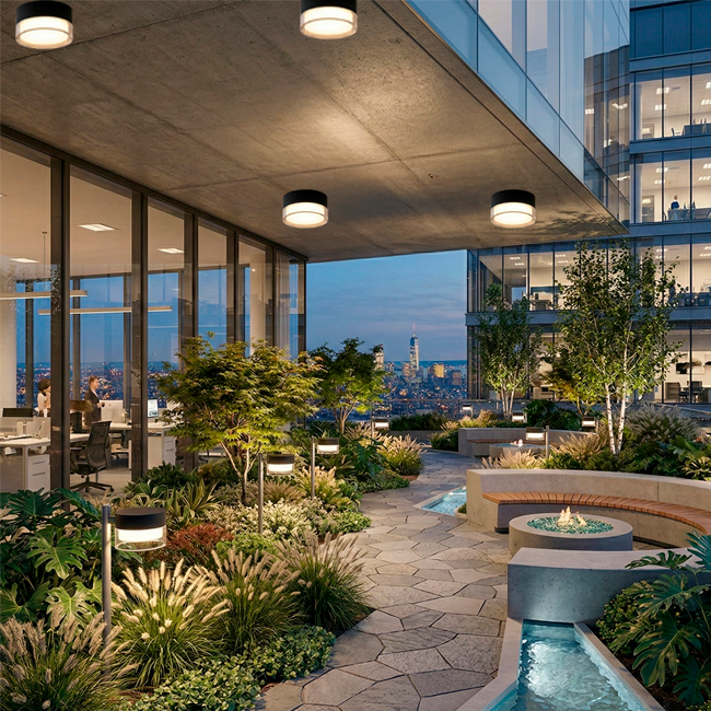 • ILUMINACIÓN PAISAJISTA PARA JARDINES EN OFICINAS MODERNAS