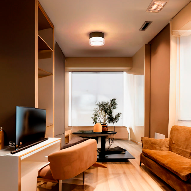 El sistema interno de tecnología LED, está distribuido de forma homogénea y ordenada reduciendo la sombra al momento del encendido hacia la pared.