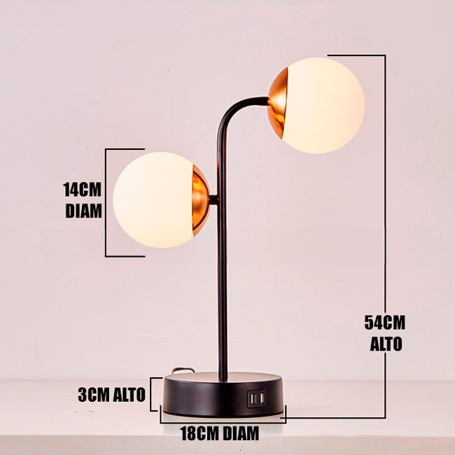 Nombre del Producto | LÁMPARA DE MESA BRUNELLA BLACK AND GOLD + CARGADOR USB PARA IPHONE Y ANDROID - SIN FOCOS |