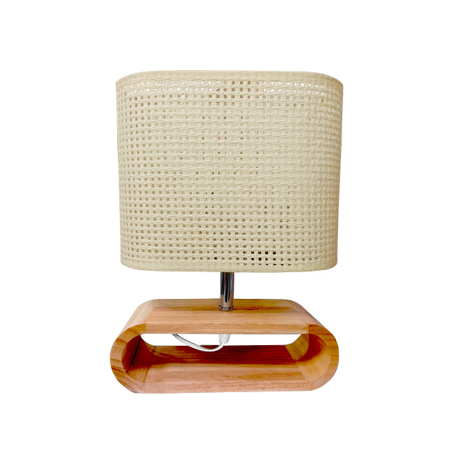 La lámpara de mesa Iris fusiona la naturalidad de la madera con un diseño moderno y limpio. Su base ovalada en madera clara aporta carácter decorativo y calidez, mientras que la pantalla cilíndrica de malla tejida filtra la luz suavemente, generando un efecto acogedor y relajante. Es una pieza perfecta para complementar salas, dormitorios o espacios con decoración tipo mid-century o nórdica.