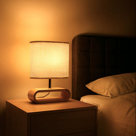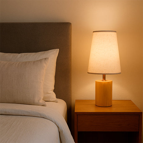 LÁMPARA DE MESA DE MADERA ROCIO + FOCO LED 12W LUZ CÁLIDA