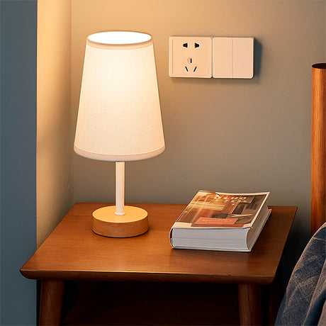 LÁMPARA DE MESA DE MADERA IRIS CABLE BLANCO + FOCO LED 12W LUZ CÁLIDA