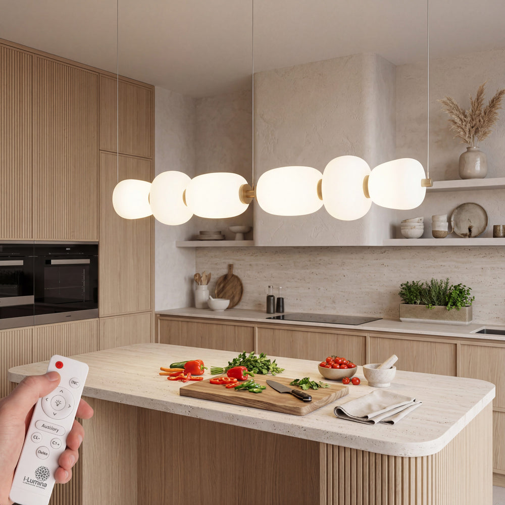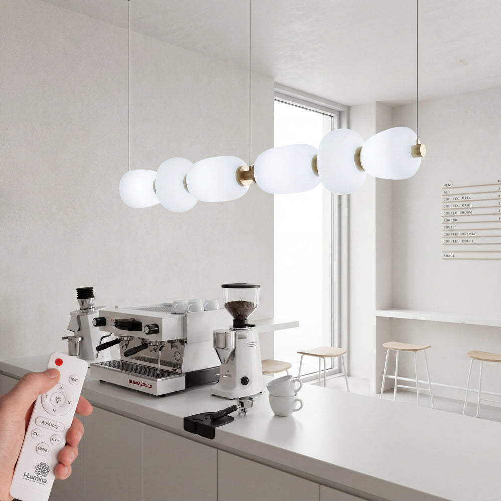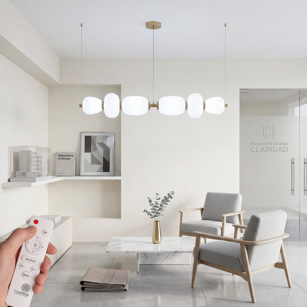 La Pebble Line es la pieza que todo diseñador de interiores desea para un comedor de concepto abierto. Debido a su longitud, recomendamos instalarla a una altura de 75 cm a 85 cm sobre la mesa; esto permite que la lámpara enmarque visualmente la zona social sin obstruir la vista hacia el resto del hogar. Use la luz neutra durante sus reuniones sociales para resaltar las texturas de su mobiliario y la luz cálida para cenas íntimas, logrando ese efecto de 'hogar de revista' que solo i-Lumina puede ofrecer.