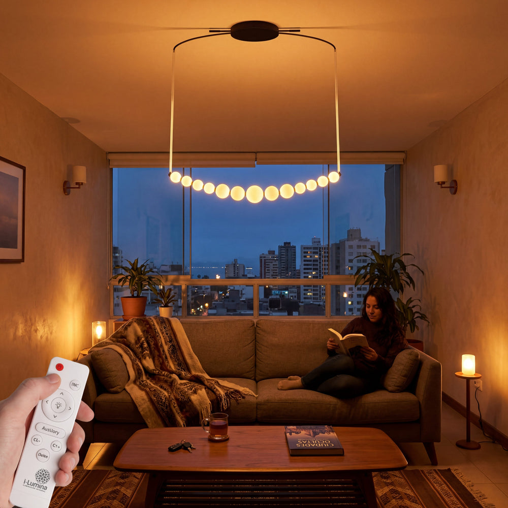 El consejo de diseño: Instálala a 80 cm sobre tu mesa de comedor para lograr una presencia escultural. Si la colocas en el dormitorio, aprovecha el control remoto para programar la luz cálida con baja intensidad antes de dormir; esto ayudará a tu cuerpo a relajarse de forma natural.