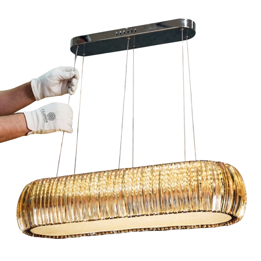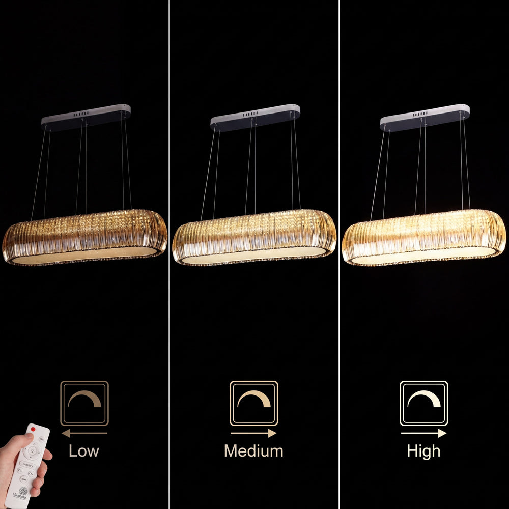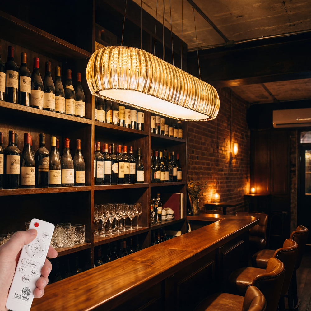 La lámpara MIEL PÉTREA es una de nuestras favoritas para proyectos de interiorismo en departamentos modernos. Su formato lineal y ovalado la hace ideal para coronar mesas de comedor rectangulares o islas de cocina de granito. Lo que más valoran nuestros clientes en Perú es la versatilidad del control remoto; poder bajar la intensidad de la luz para ver una película después de cenar es un lujo funcional que todos merecen tener en casa.