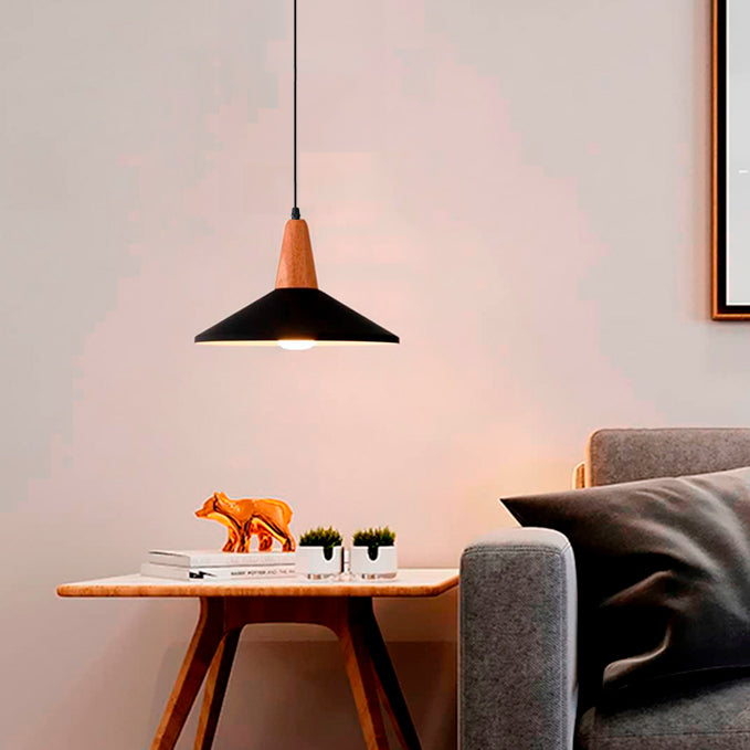 La Lámpara Colgante Princeton Black and Wood fusiona el estilo moderno con un toque natural gracias a su elegante combinación de negro mate y madera clara. Su diseño cónico estilizado no solo aporta sofisticación, sino que también mejora la proyección de luz gracias a su interior blanco brillante. Es perfecta para ambientes cálidos y contemporáneos. Funciona con foco de rosca E27 (no incluido), lo que permite ajustar la iluminación según la necesidad del espacio.