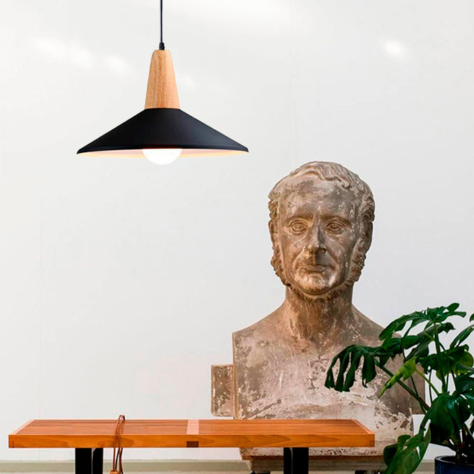 Nombre del Producto | LÁMPARA COLGANTE CAMPANA DE ALUMINIO PRINCETON BLACK AND WOOD / SIN FOCO |