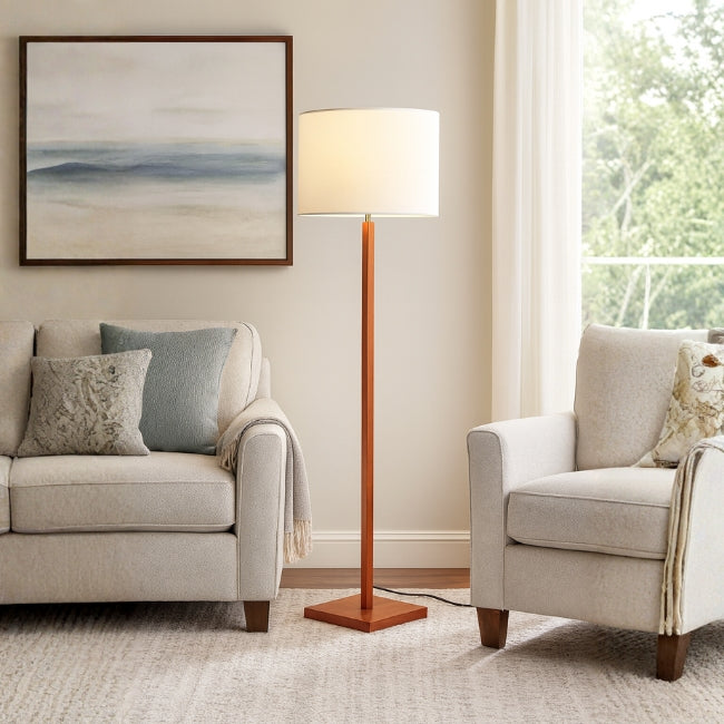 Nombre del Producto | LÁMPARA DE PIE DE MADERA ACAZIEL + FOCO LED 12W LUZ CÁLIDA + PANTALLA 45DIAM 25ALT TOCUYO HUACHA CORTADA |