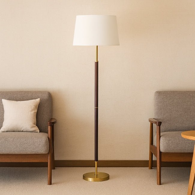 Hermosa lámpara de pie Jessica Gold + Nogal Oscuro, diseñada con madera natural y un acabado ligeramente satinado, esta elegante lámpara de pie le agrega un estilo moderno y lujoso a su hogar. Disfrute de una iluminación cálida y suave con este hermoso accesorio decorativo.