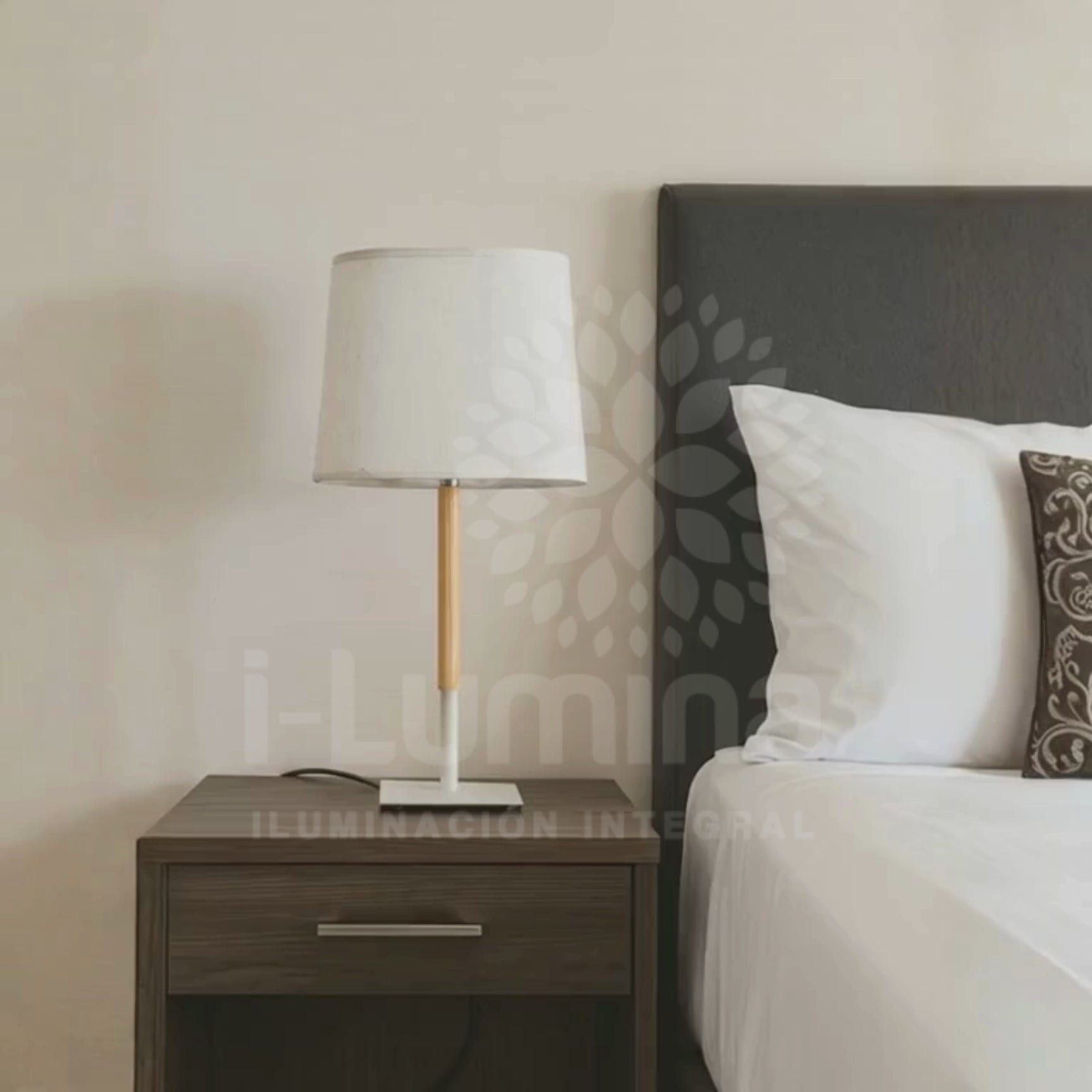 La lámpara de mesa Polonia Wood and White combina un estilo escandinavo con líneas limpias y materiales naturales, ideal para crear ambientes luminosos y acogedores. Su estructura mezcla la calidez de la madera natural con el blanco puro de la base y la pantalla, aportando frescura y serenidad a cualquier espacio. Perfecta para dormitorios, salas o escritorios donde se busca una luz suave y decorativa.