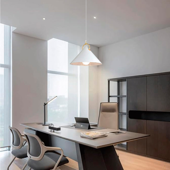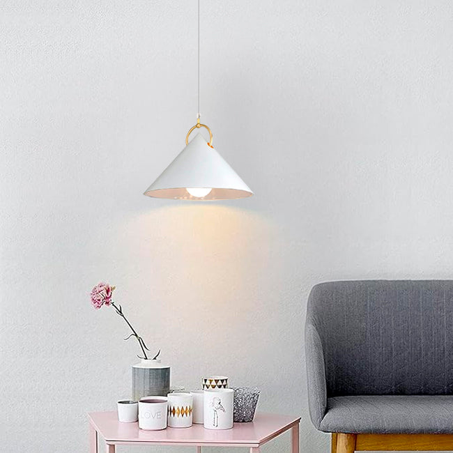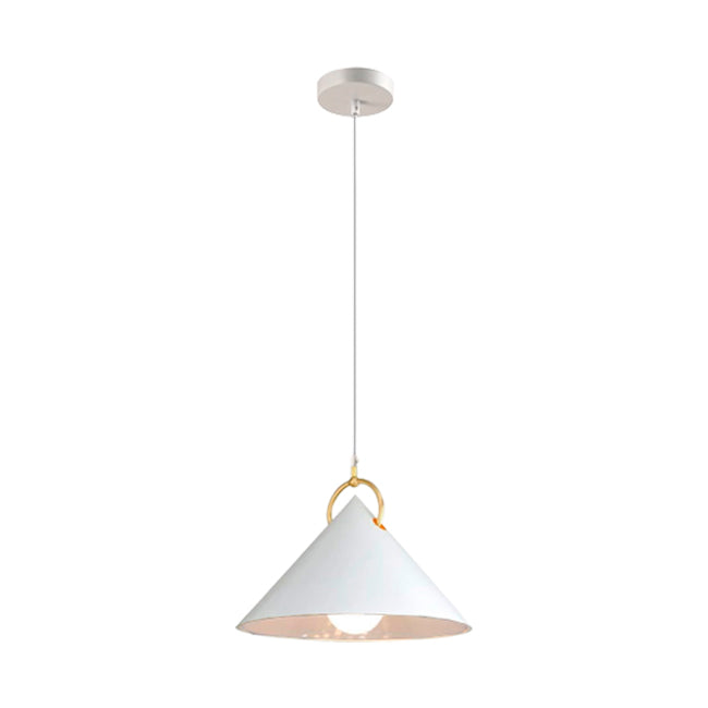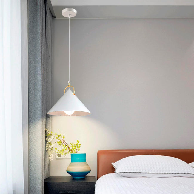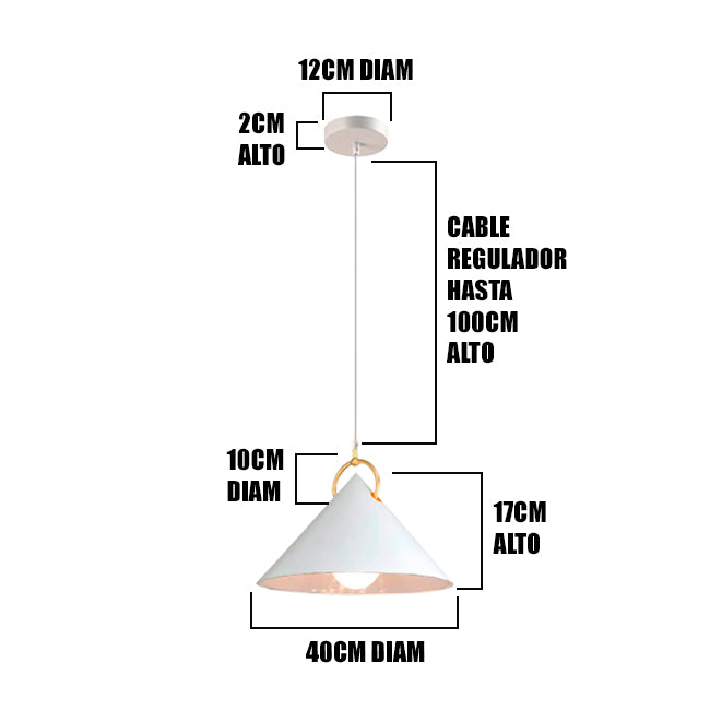 La Lámpara Colgante Delhi White and Gold combina sobriedad y estilo con un diseño tipo campana de gran tamaño que aporta carácter a cualquier ambiente. Su estructura de aluminio en acabado blanco mate se realza con un elegante detalle superior en dorado, creando una pieza funcional y decorativa. Compatible con foco de rosca E27 (no incluido), ofrece versatilidad para adaptar la iluminación al estilo deseado.