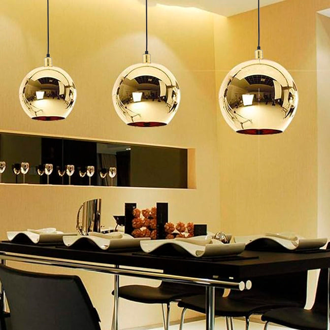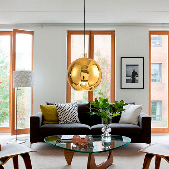La Lámpara Colgante Aurora Gold destaca por su elegante diseño esférico de acabado dorado espejo, ideal para ambientes glamorosos y modernos. Su forma redondeada y pulida no solo aporta un toque sofisticado, sino que también refleja la luz y el entorno, elevando el estilo de cualquier espacio. Funciona con foco de rosca E27 (no incluido), lo que te permite personalizar la temperatura y tipo de luz según tus necesidades.