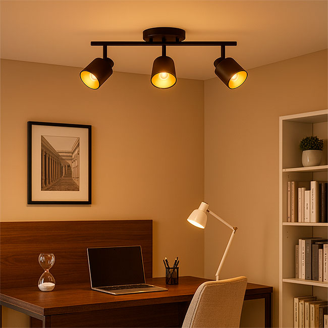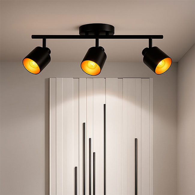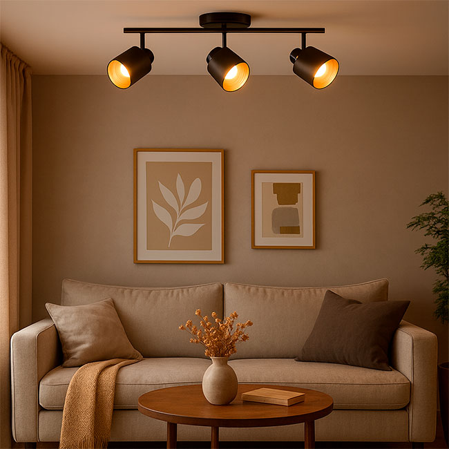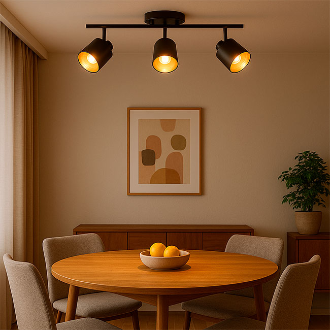 La base hecha con 100% aluminio extruido y cubierta con pintura en polvo al horno (150°C) la convierte en la TOP de luminarias decorativas adosadas al techo.