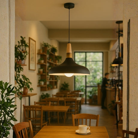 LÁMPARA COLGANTE ELIS BLACK AND WOOD + FOCO LED 12W LUZ CÁLIDA