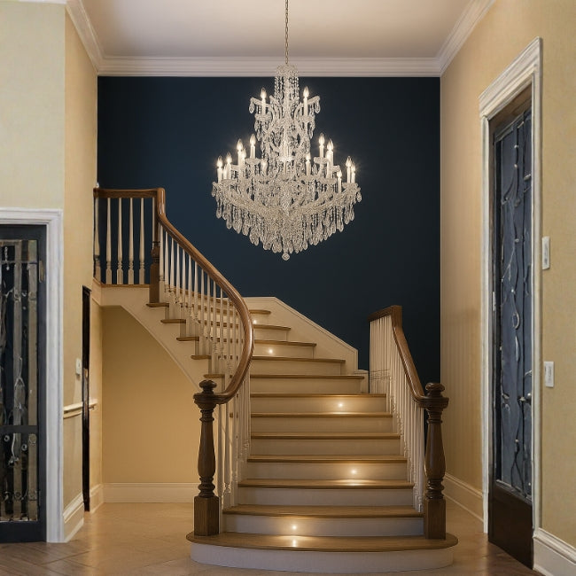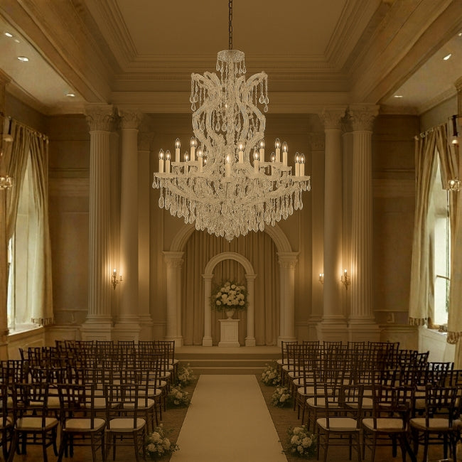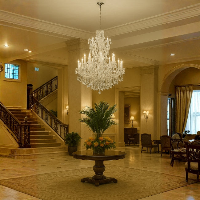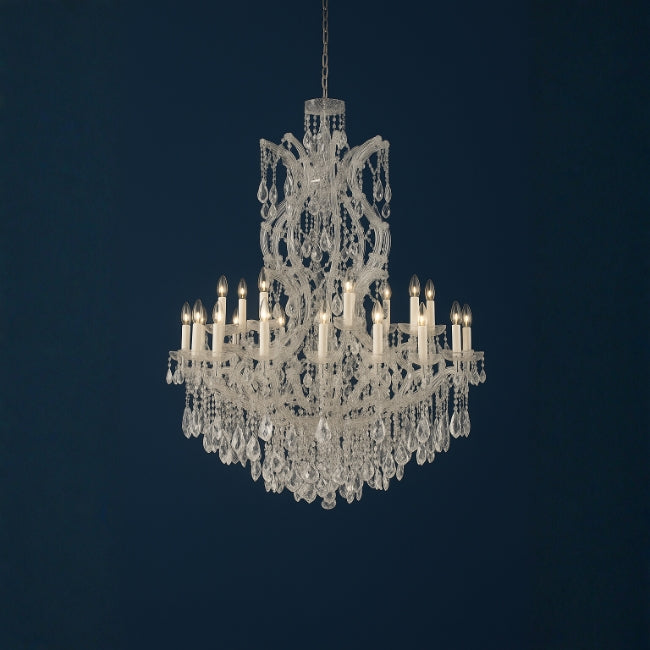 Dale un aire majestuoso a tus espacios con la lámpara colgante Krystal Maria Theresa. Su diseño clásico y ornamentado, enriquecido con finos cristales transparentes, la convierte en una pieza imponente y sofisticada, ideal para ambientes que buscan destacar por su elegancia y esplendor. Perfecta para salas de doble altura, vestíbulos de hoteles, comedores formales o espacios de alto impacto visual.