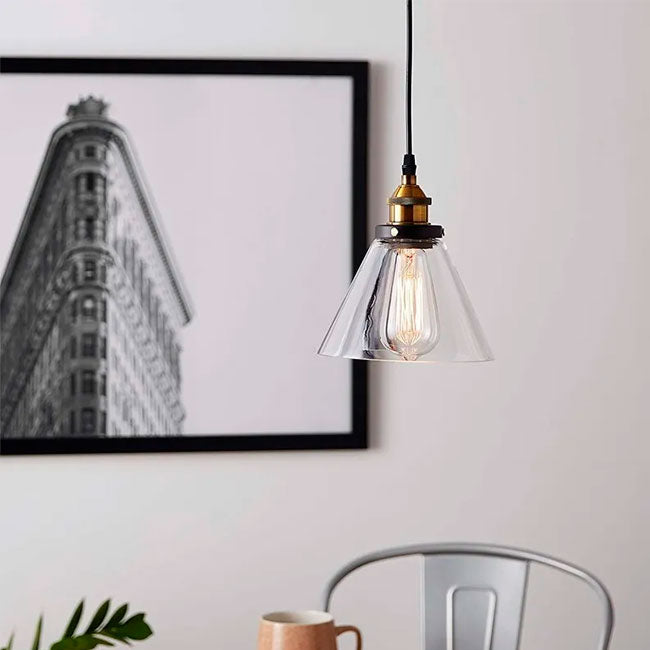 Para los amantes de lo moderno y minimalista, nuestra hermosa Lámpara Colgante Milano Lux Gold contiene una fina pantalla de vidrio transparente. Brindando un toque sobrio y elegante a la lámpara.