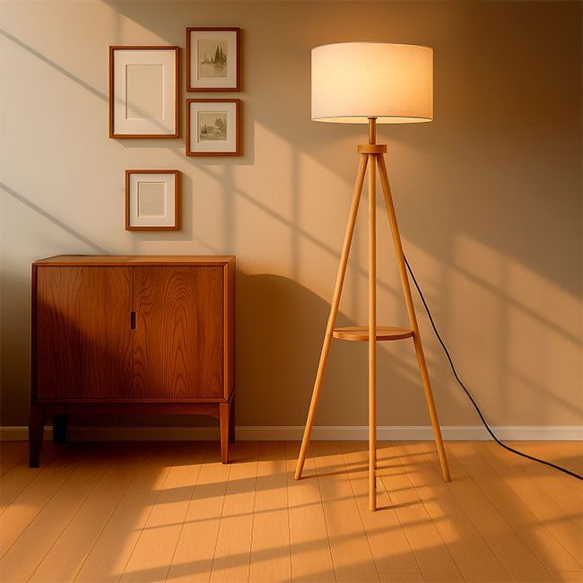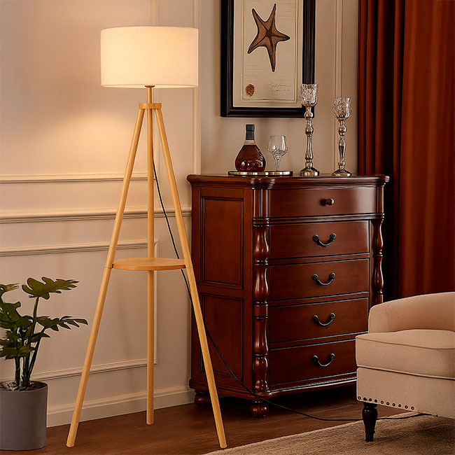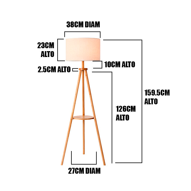 | Nombre del Producto | LÁMPARA DE PIE TRÍPODE NORUEGA NATURAL NORDIC SHELF CON REPISA - SIN FOCO |