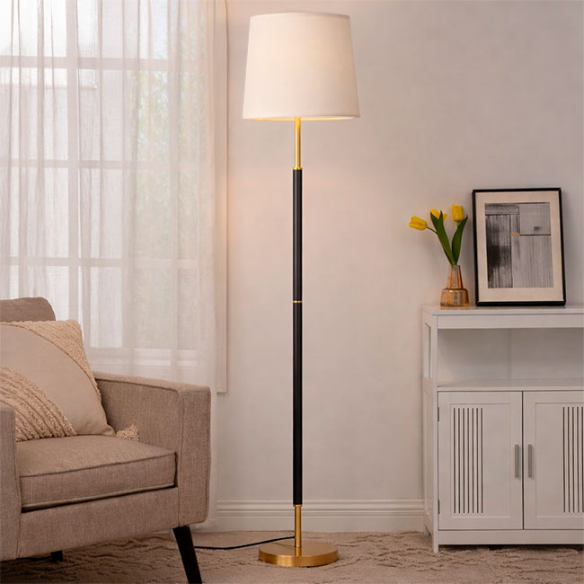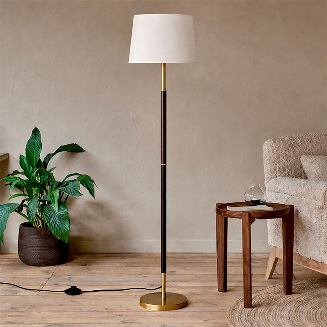 Hermosa lámpara de pie Jessica Gold + Nogal Oscuro, diseñada con madera natural y un acabado ligeramente satinado, esta elegante lámpara de pie le agrega un estilo moderno y lujoso a su hogar. Disfrute de una iluminación cálida y suave con este hermoso accesorio decorativo.