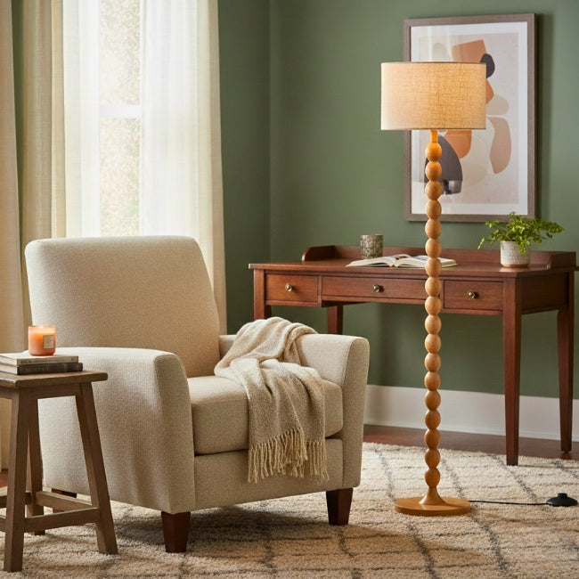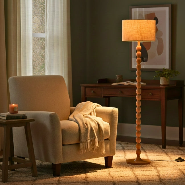 Textura y calidez natural: La lámpara de pie Wood Bubbles Boho, el acento que tu espacio orgánico necesitaba.