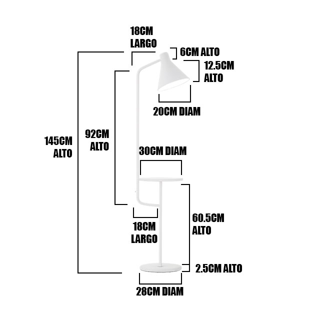 | Nombre del Producto | LÁMPARA DE PIE SCANDI TABLE WHITE CON MESA AUXILIAR - SIN FOCO |