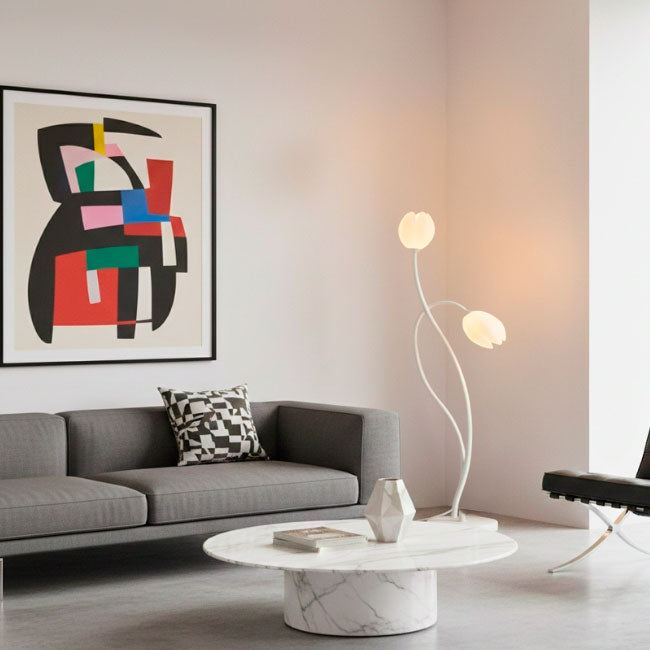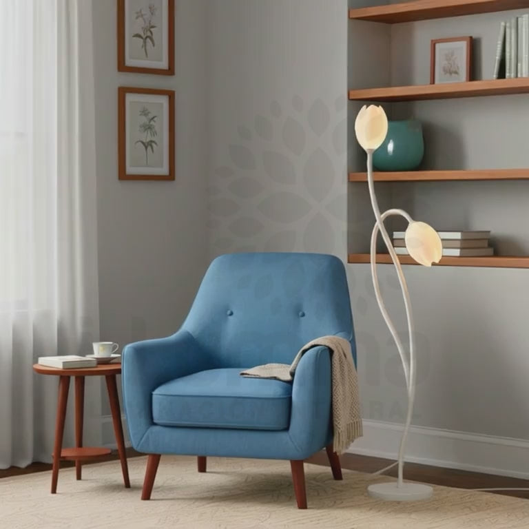 La Lámpara de Pie Tulipán Nórdica White de ILUMINA es una obra de arte funcional que inyecta un toque de naturaleza y elegancia minimalista a cualquier espacio moderno en Perú. Inspirada en la fluidez de un tallo floral, esta lámpara presenta dos pantallas en forma de tulipán que emiten una luz ambiental suave y difusa. Su estructura delgada y base blanca se integran sutilmente, convirtiéndola en el acento perfecto para salas, dormitorios o lobbies de estilo nórdico, orgánico y contemporáneo.