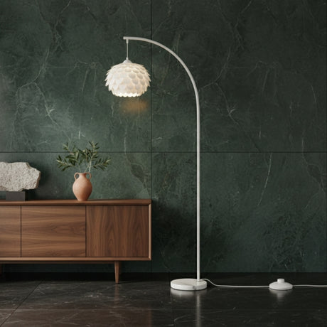 LÁMPARA DE PIE ARCO LOTUS WHITE CON BASE DE MÁRMOL - SIN FOCO