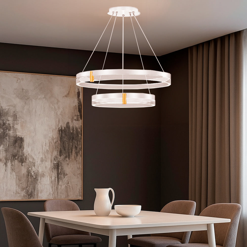 El diseño lineal moderno de nuestra lámpara colgante Montserrat White and Gold, podrás ajustar la iluminación para crear un ambiente acogedor. ¡Disfruta de una iluminación agradable y renueva tu decoración con esta lámpara decorativa!