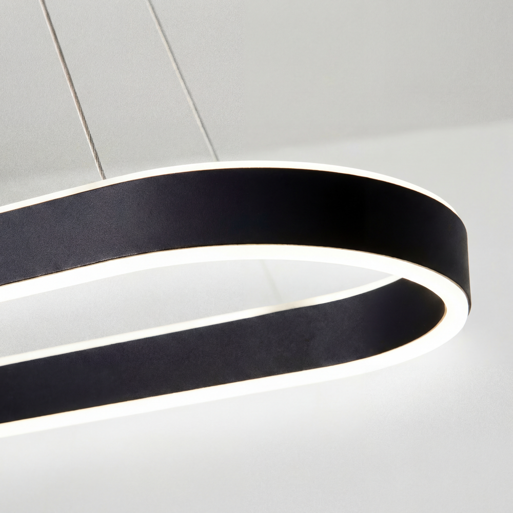 La Lámpara Colgante LED Halo Black es la máxima expresión del minimalismo orgánico. Su diseño ovalado y fluido elimina las esquinas rígidas para ofrecer una pieza que transmite calma, amplitud y sofisticación. Gracias a su acabado en negro mate, esta luminaria se integra invisiblemente en techos claros, permitiendo que la verdadera protagonista sea su luz envolvente.