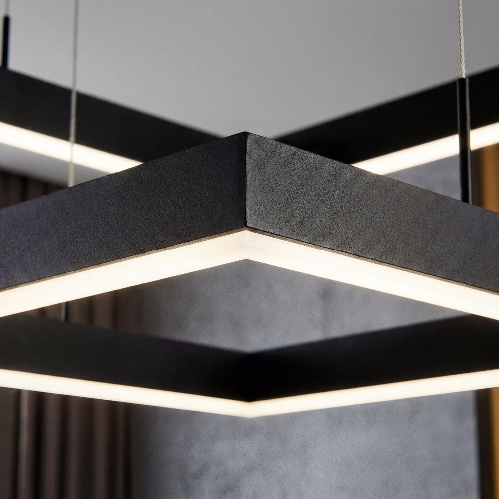 "La Square Dual es la solución perfecta para proyectos que buscan 'llenar' el espacio visualmente sin recargarlo. Al tener cables regulables, puedes jugar con la inclinación de los cuadrados para crear una escultura lumínica personalizada."