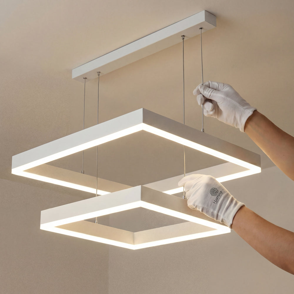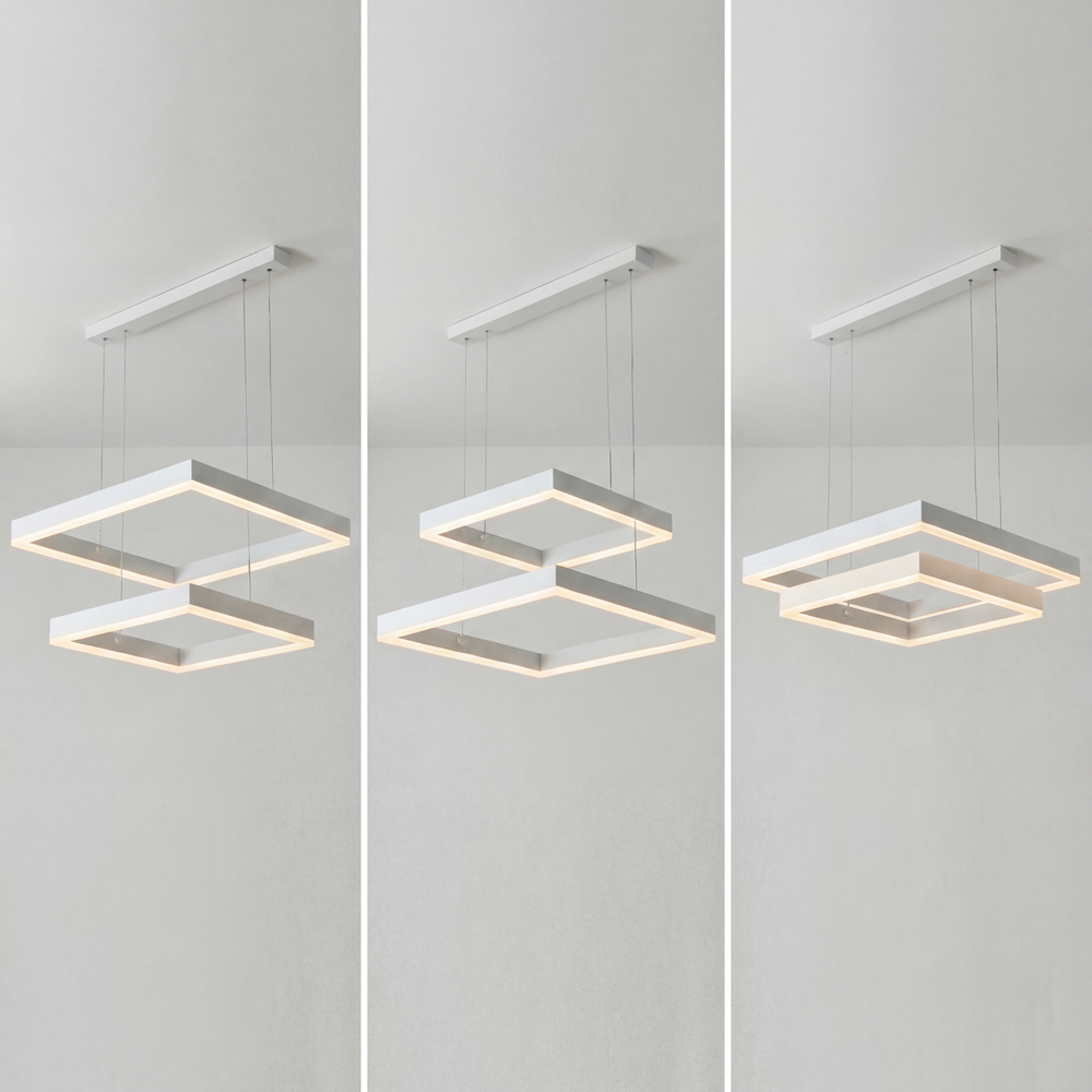 Lámpara Colgante LED Square Dual: Vanguardia y Geometría en Blanco Mate