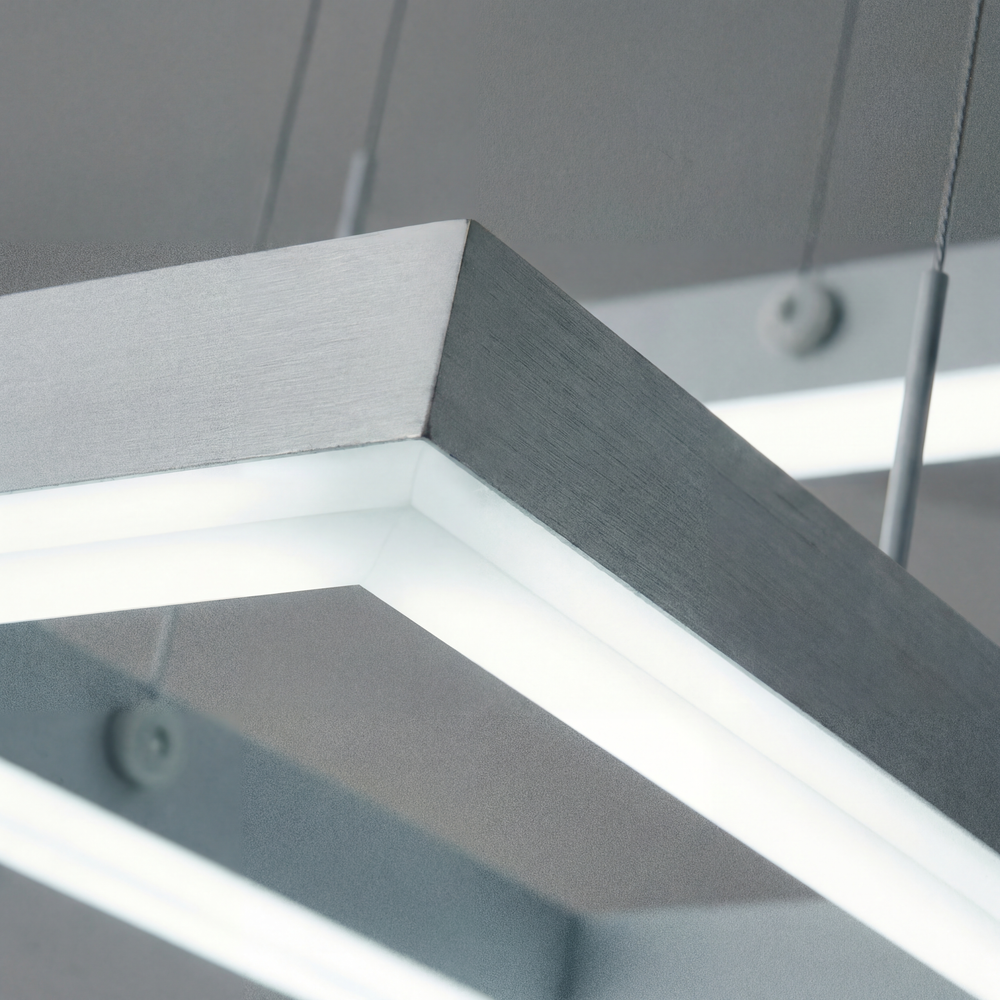 "La Square Dual es la solución perfecta para proyectos que buscan 'llenar' el espacio visualmente sin recargarlo. Al tener cables regulables, puedes jugar con la inclinación de los cuadrados para crear una escultura lumínica personalizada."