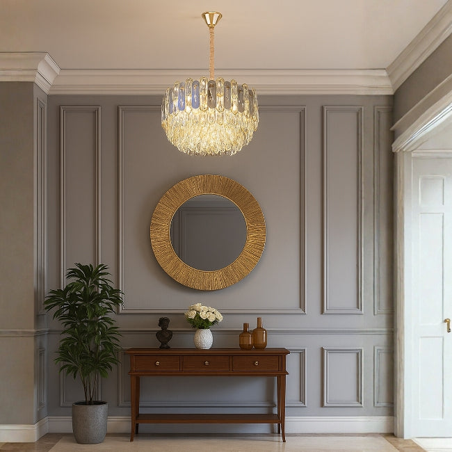La Zahra Krystal Gold no es solo una lámpara, es una declaración de diseño. Agrega lujo y luz a tu ambiente favorito con esta joya decorativa que combina lo clásico con lo contemporáneo.