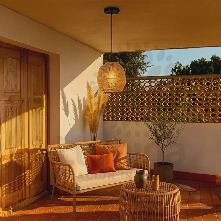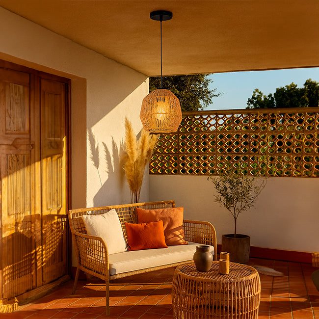 La lámpara colgante artesanal Luana de Ecolamps destaca por su diseño natural y acogedor, ideal para terrazas, comedores o espacios donde se busca un ambiente cálido y relajante. Su pantalla tejida artesanalmente aporta textura y encanto orgánico, mientras que su cable negro regulable, resistencia y estilo rústico. Es compatible con focos LED de rosca E27, lo que permite elegir la tonalidad de luz más adecuada según el ambiente.