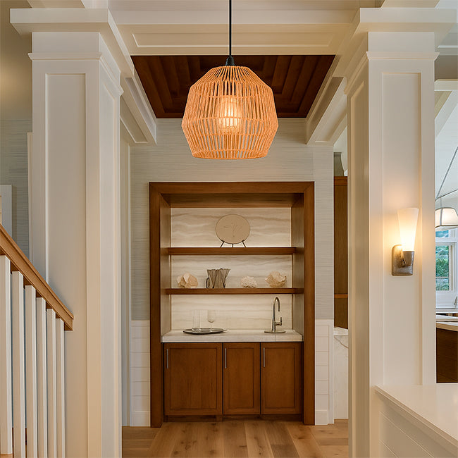 ✨ La lámpara combina diseño artesanal, materiales naturales y funcionalidad moderna.