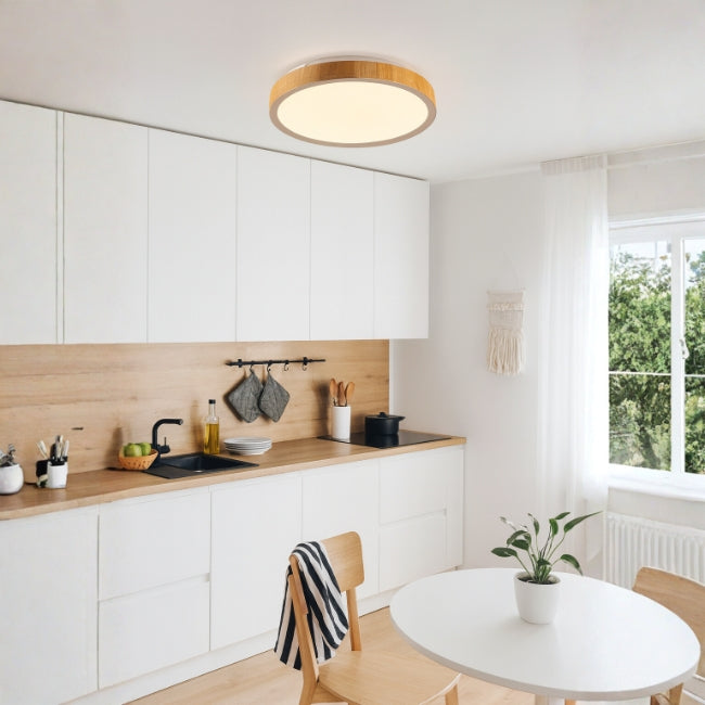 La Lámpara de Techo Delia LED Wood combina un diseño moderno con la calidez del acabado en madera natural. Su estructura circular y perfil delgado aportan una estética elegante que armoniza con cualquier ambiente. Equipada con tecnología LED tricolor y control remoto, permite personalizar el tono e intensidad de la luz según la ocasión, garantizando confort visual y eficiencia energética.