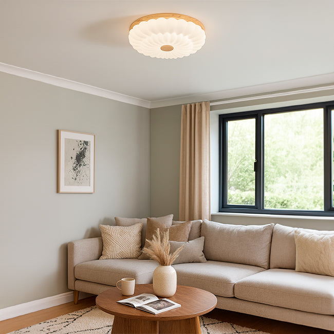 La lámpara de techo Gretel Wood fusiona elegancia y naturalidad en un diseño que aporta calidez y distinción a cualquier espacio. Su difusor acrílico en forma de flor con delicadas ondas proyecta una luz suave y homogénea, mientras que el borde en acabado madera realza su estilo natural. Equipada con control remoto, te permite ajustar el color y la intensidad de la luz según el ambiente que desees crear.