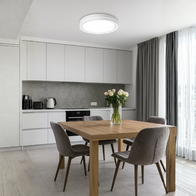 La lámpara de techo Luciana LED White 30W redefine la iluminación moderna con su diseño minimalista y elegante acabado blanco. Diseñada para brindar confort visual y control total, integra tecnología LED tricolor que permite elegir entre luz cálida, neutra o fría desde el control remoto incluido. Ideal para espacios contemporáneos donde se busca estilo, eficiencia y practicidad.