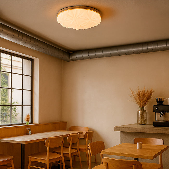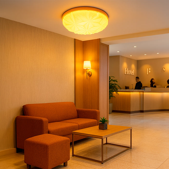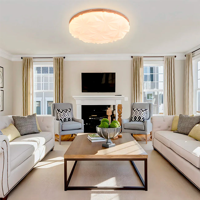 • Material: Acrílico difusor + detalle decorativo madera clara