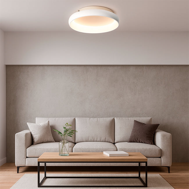 La lámpara de techo Verenise LED White destaca por su diseño minimalista y elegante, ideal para espacios modernos que buscan una iluminación limpia y funcional. Su estructura blanca mate proyecta una luz suave y envolvente, generando una atmósfera cálida y equilibrada. Equipada con control remoto, permite regular el color e intensidad de la luz con facilidad, adaptándose a cada necesidad del día.
