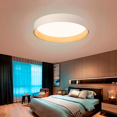 LÁMPARA DE TECHO AMELIA LED WHITE AND WOOD 30W + CONTROL REMOTO
