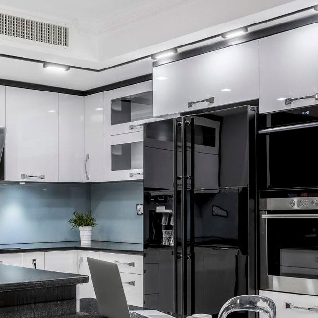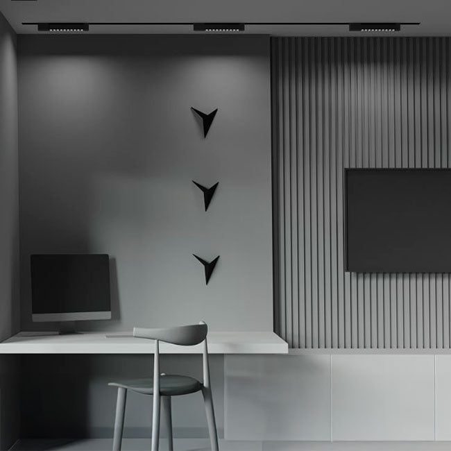 El Spot LED Grilla Black para Riel de 20W de CEM, distribuido por ILUMINA, es una solución de iluminación de acento moderna y altamente eficiente, ideal para tiendas, galerías de arte y vitrinas en Perú. Este cabezal incorpora una grilla de 10 LEDs que, en conjunto, emiten 1600 lúmenes de una confortable Luz Cálida (3000K). Su diseño lineal y acabado negro mate se integra perfectamente en rieles, permitiendo dirigir el haz de luz con precisión (120°) para destacar productos, obras o elementos arquitectónicos.
