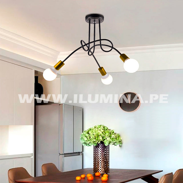 Nombre del Producto | LÁMPARA DE TECHO LUANA 3 BLACK AND GOLD |