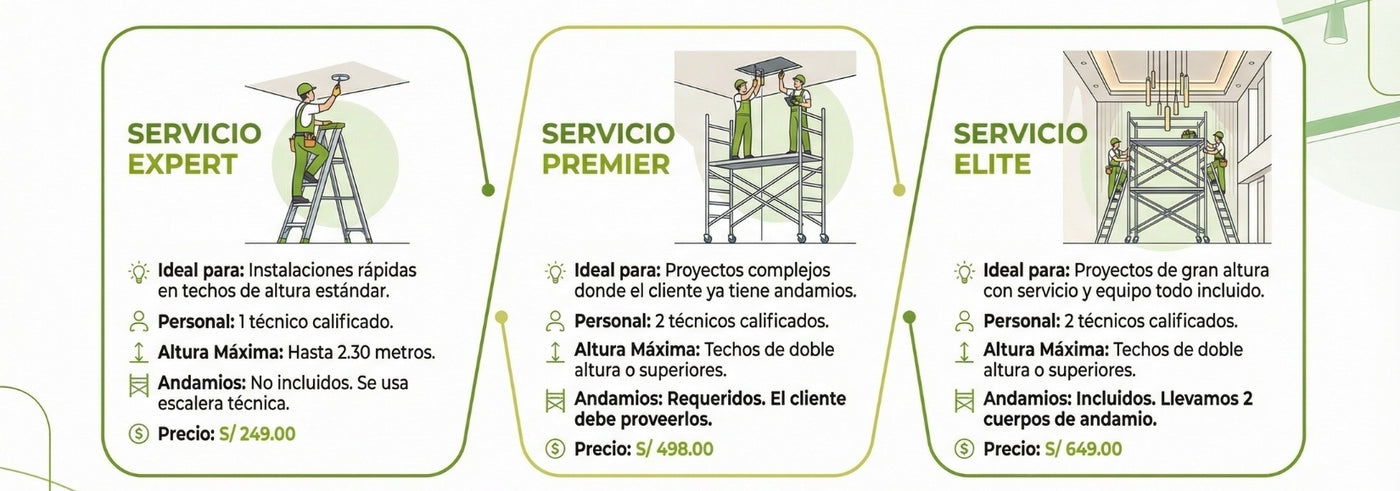 - Desmontaje de luminarias antiguas (tiene un costo adicional desde s/100).