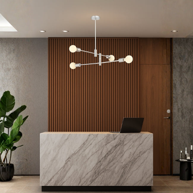 La lámpara colgante Khala Silver combina elegancia moderna y simetría arquitectónica en un diseño que resalta por su estructura metálica plateada. Su estilo minimalista y sofisticado la convierte en una pieza central ideal para salas, comedores o recibidores contemporáneos.