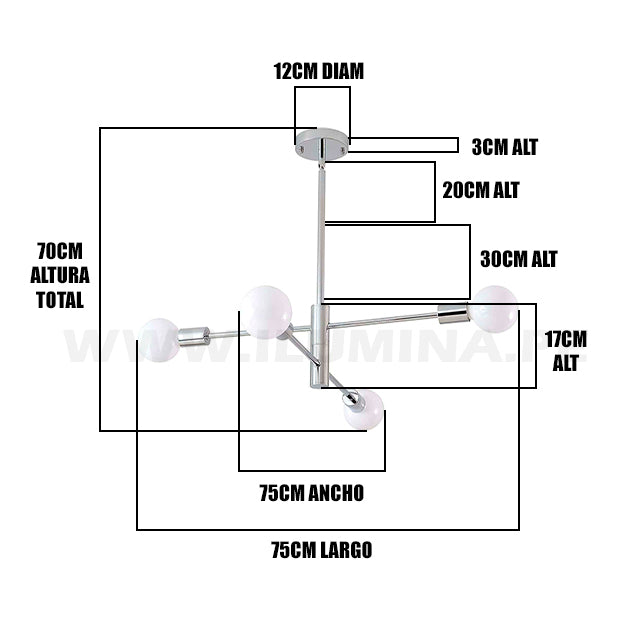 • Fuente de luz: Focos LED o filamento (no incluidos)